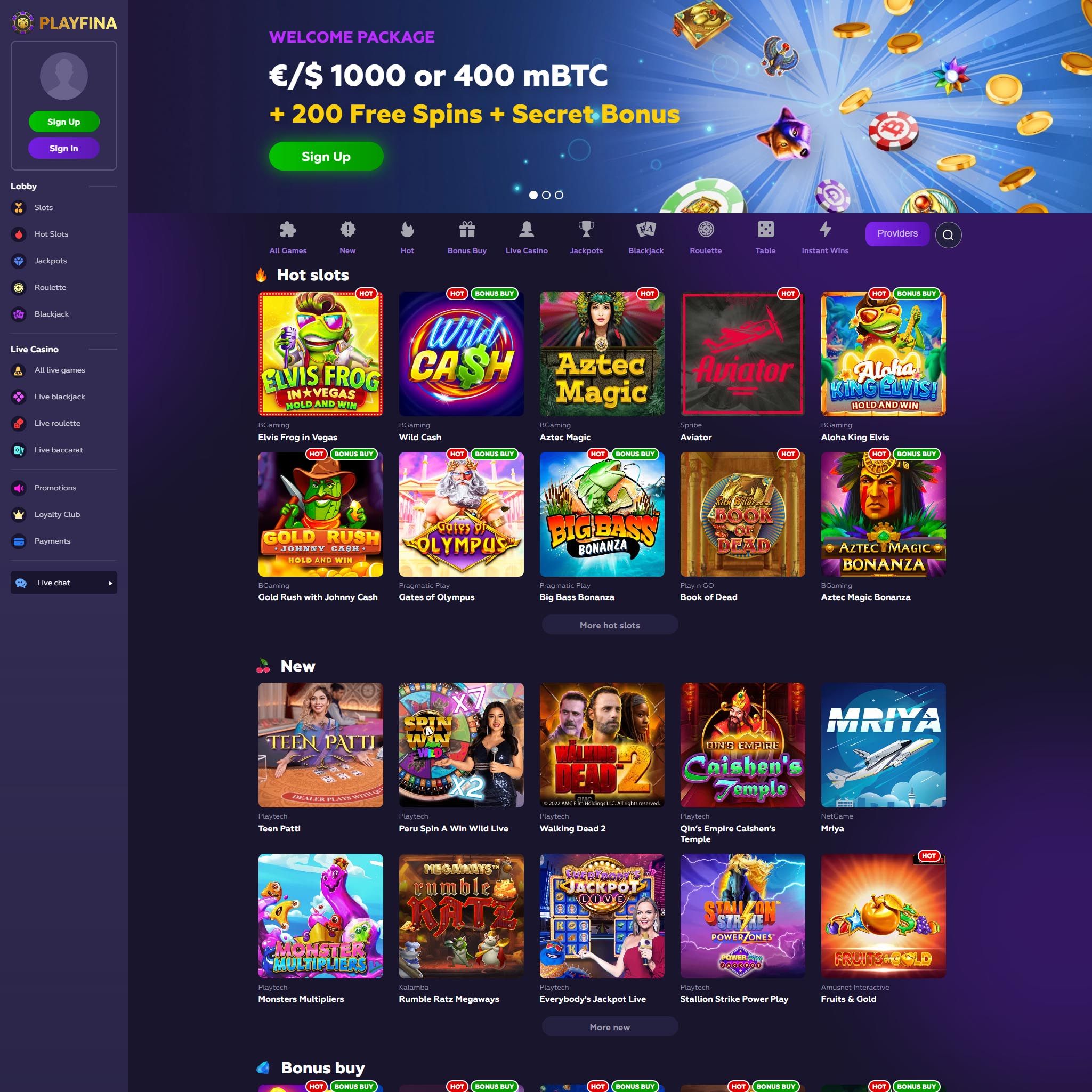 Don't miss out on this opportunity to enhance your Playfina experience with their sign-up bonus. Sign up today and start playing!